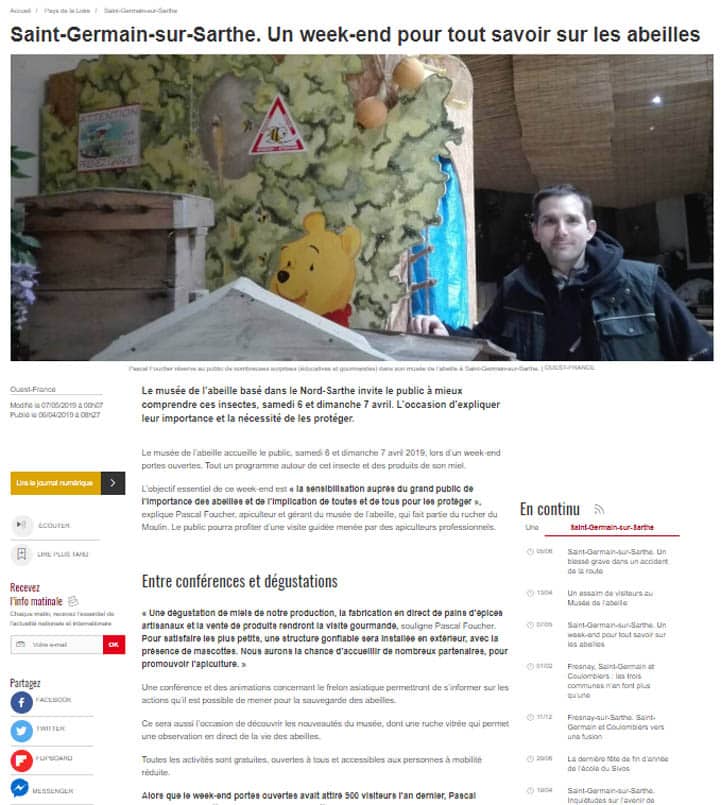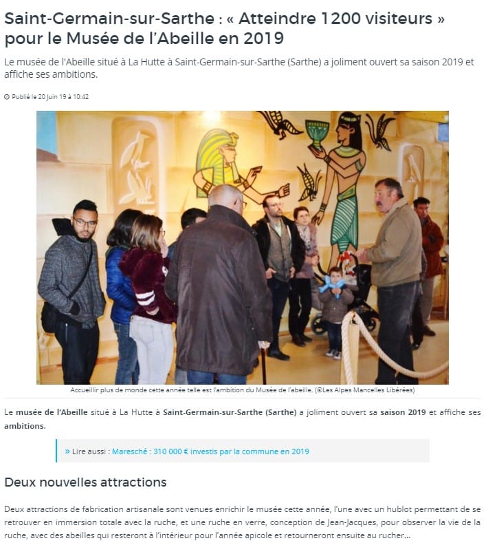 Auparavant situé au Tronchet en Sarthe, Le Musée de l’Abeille s’est déplacé de quelques kilomètres pour atterrir à la Hutte (Commune de Saint-Germain-sur-Sarthe, 72).